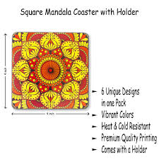 This could further be witnessed in an infographic showing a square mandala coaster with a holder :